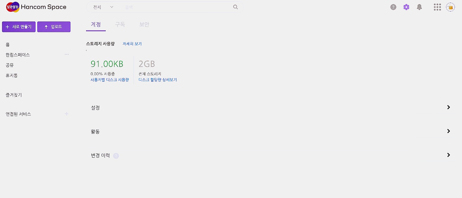 클라우드 용량 2기가까지 무제한으로 사용가능합니다.