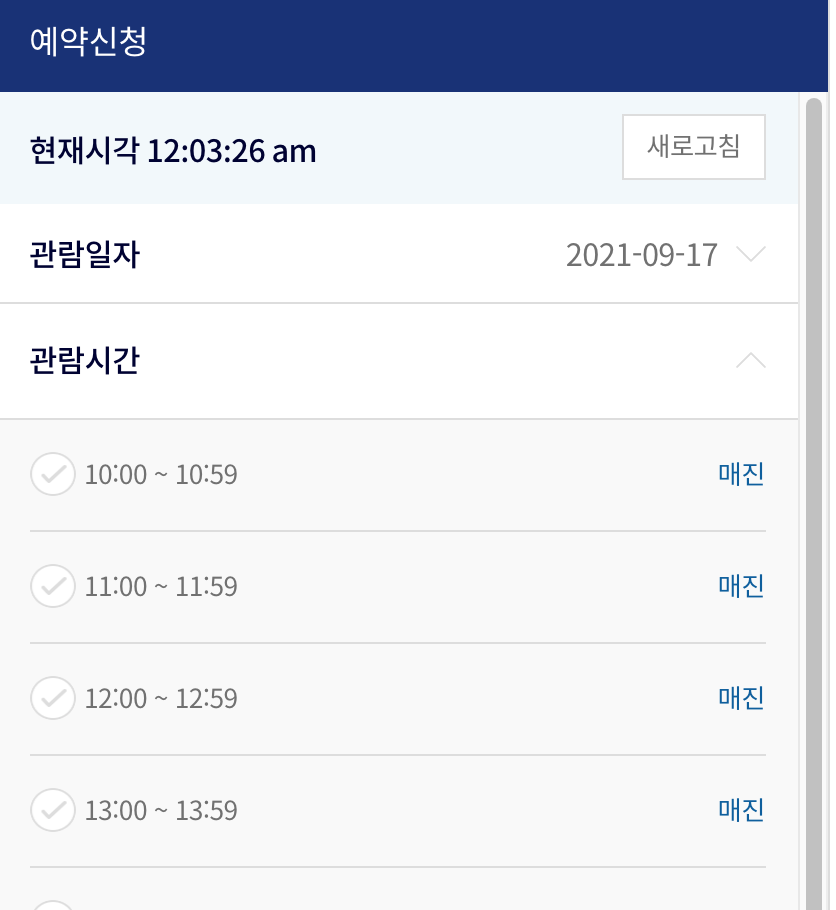 - 국립현대미술관은 전시일 14일 전 00:00에 오픈되는데요. 12시 02분에 들어갔는데도 매진이네요!! 보통 1분 이내로 매진된다고 합니다.