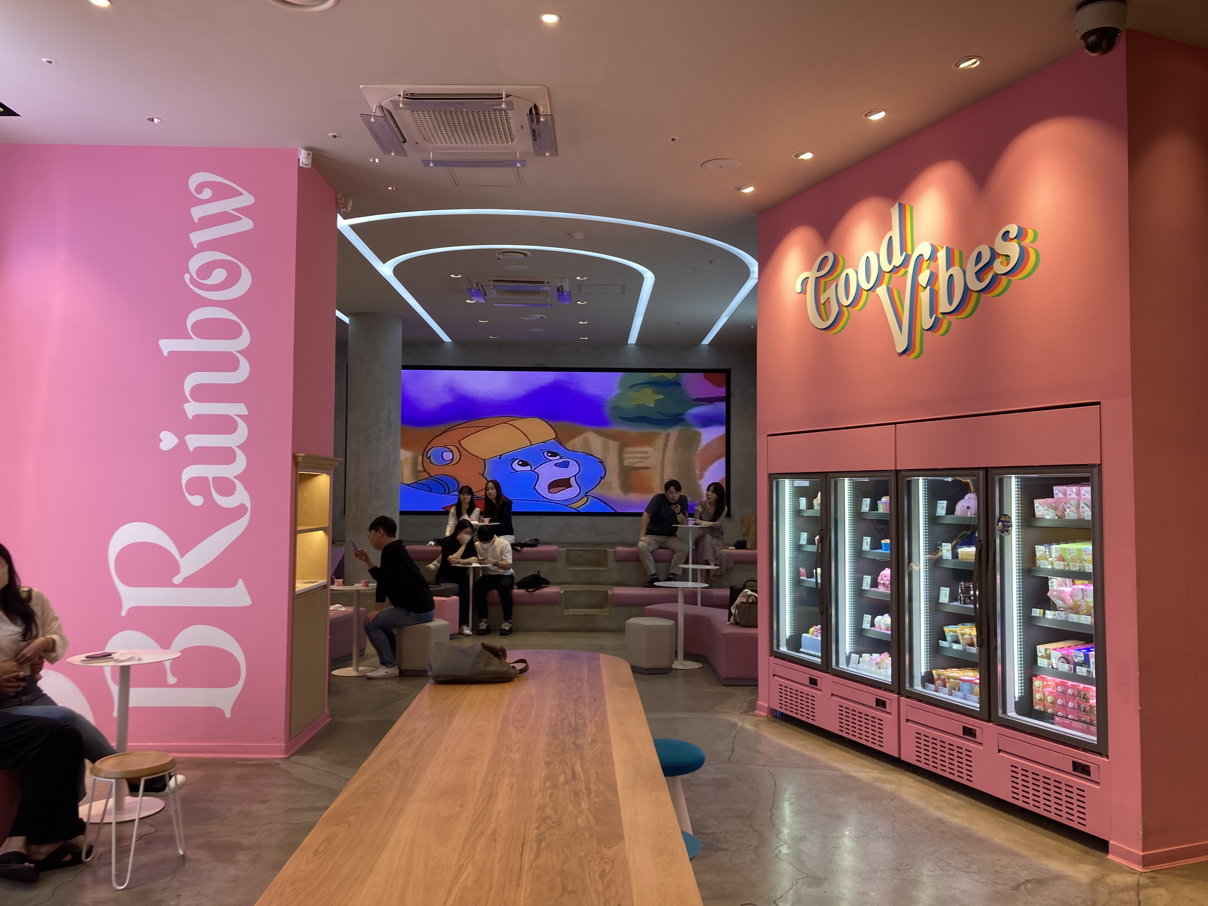 안쪽 대형스크린에는 케어베어 애니메이션도 나오고 있네요. 귀여워!