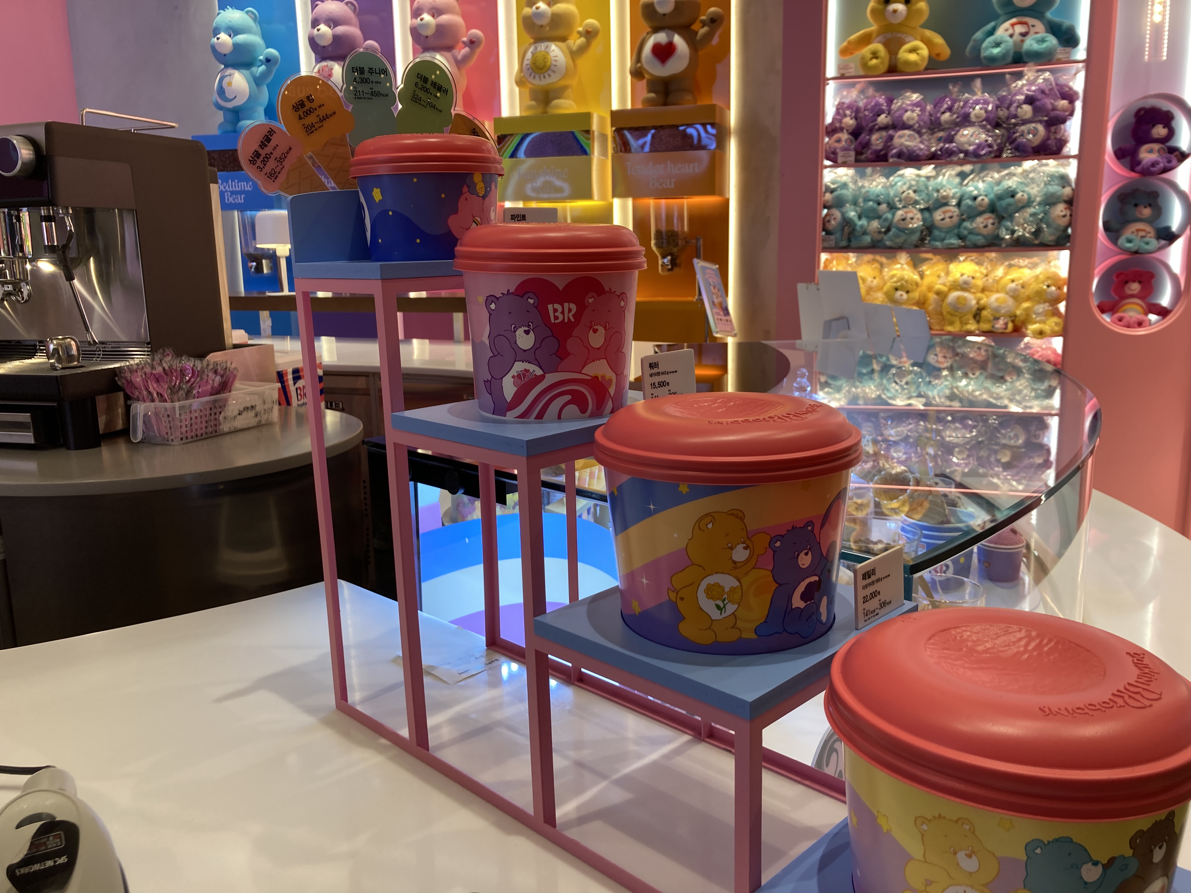 매장 외부부터 내부, 메뉴판, 굿즈까지 케어베어로 온통 도배가 되었네요!
