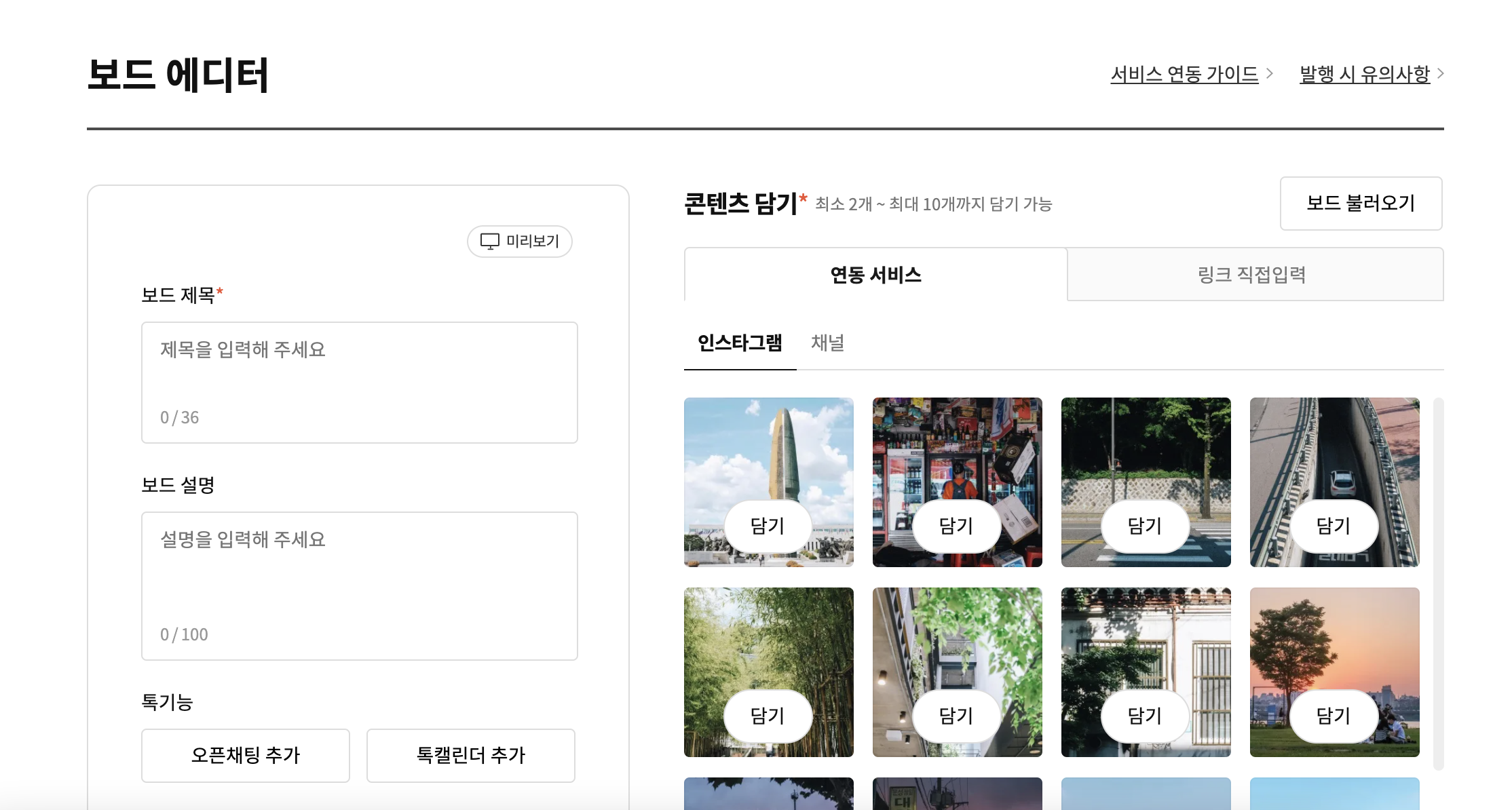 콘텐츠를 여러개 담아 큐레이션 해주고 보드 제목, 보드 설명을 입력해주면 발행 끝입니다!