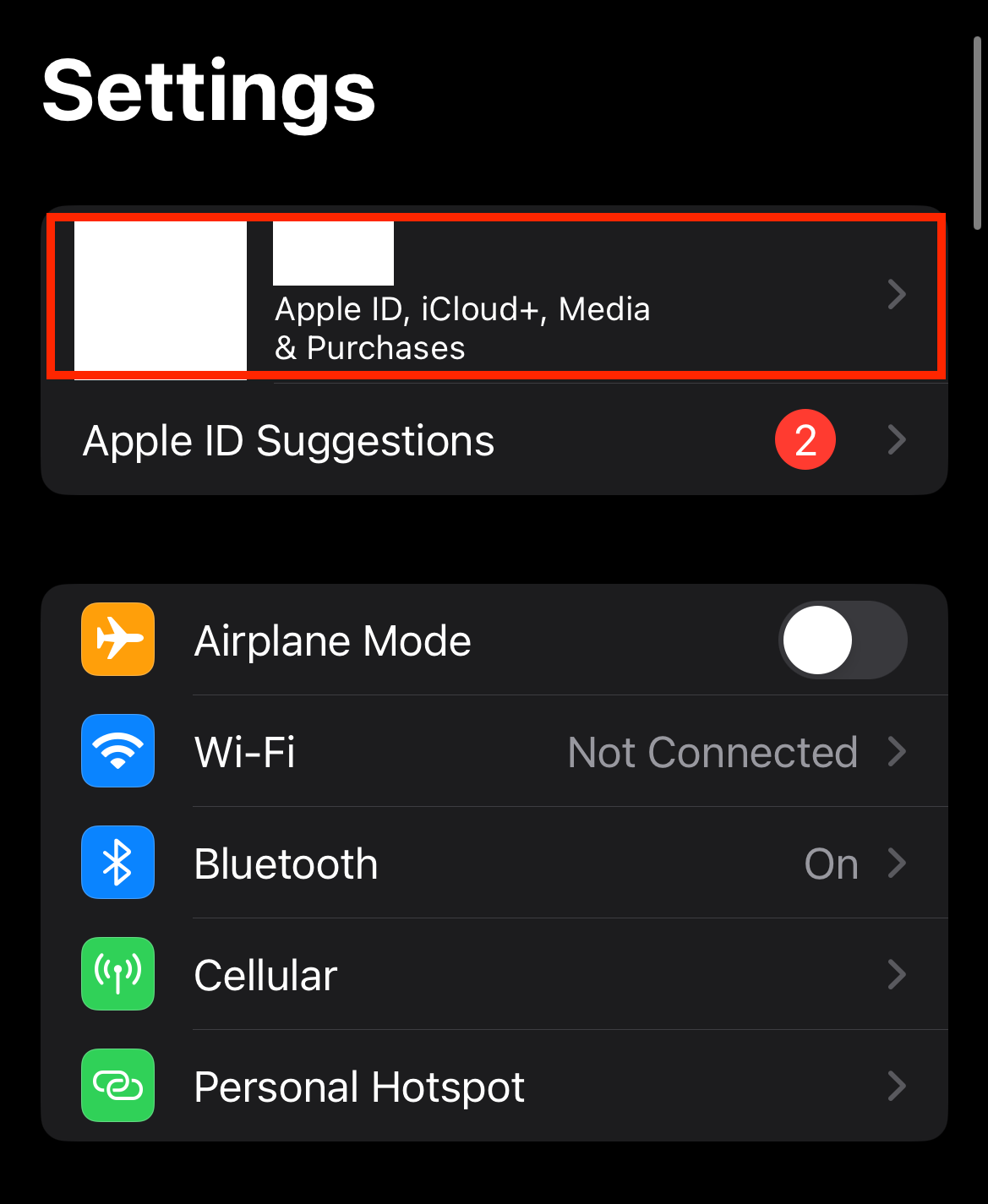 2. 화면 상단에 있는 본인의 Apple ID를 탭합니다.