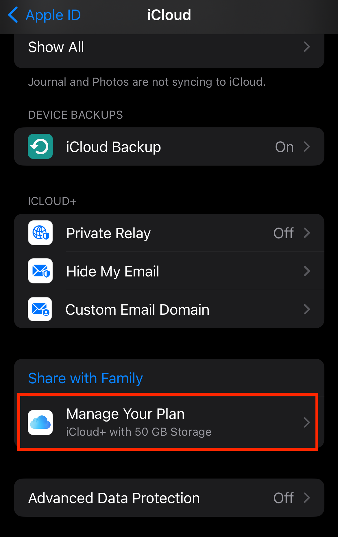 5. Manage Your Plan (저장 공간 관리)가 나와요.