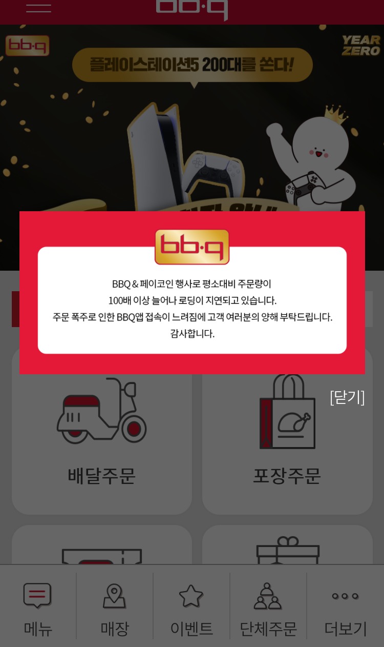 비비큐도 회원가입하고 포장주문 클릭하는데, 매장 검색이 안 된다. 당연히 주문도 안 되고.